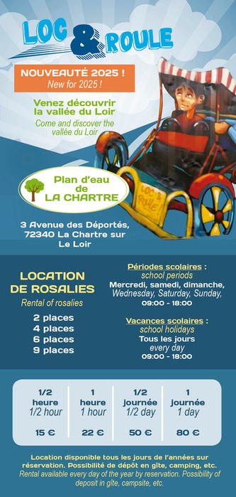 Des rosalies sont disponibles au départ du plan d’eau de La Chartre-sur-le-Loir, offrant une activité ludique pour toute la famille.